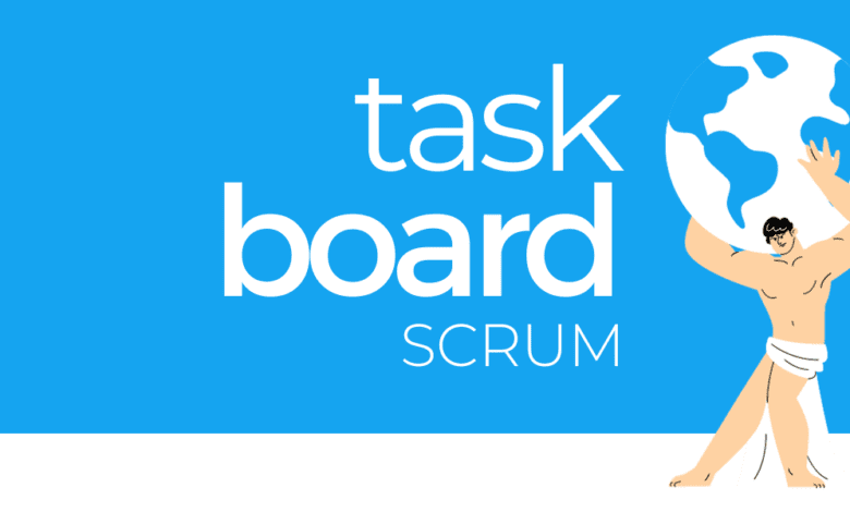 O task board representa visualmente as demandas de trabalho que uma equipe Scrum deve entregar durante um Sprint.